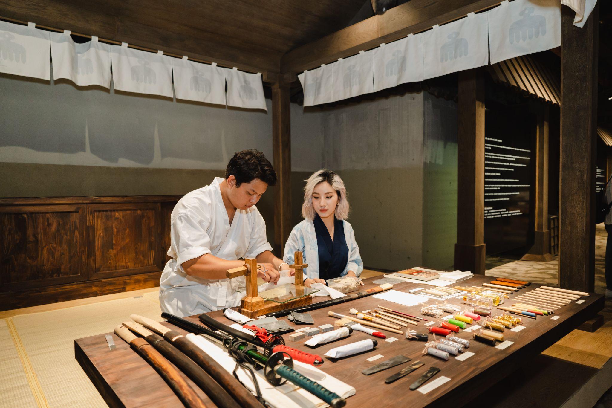 Du khách có thể “hạ nhiệt” bằng một trải nghiệm mang tính tương tác độc đáo và đậm chất văn hóa tại Làng rèn Thần Kiếm – nơi tái hiện một ngôi làng rèn kiếm cổ thời Edo để khám phá toàn bộ quy trình chế tác thanh kiếm Katana lừng danh. Từ rèn thép, mài sắc đến chạm khắc và quấn cán, mỗi bước đều được thể hiện sống động bởi bàn tay nghệ nhân.