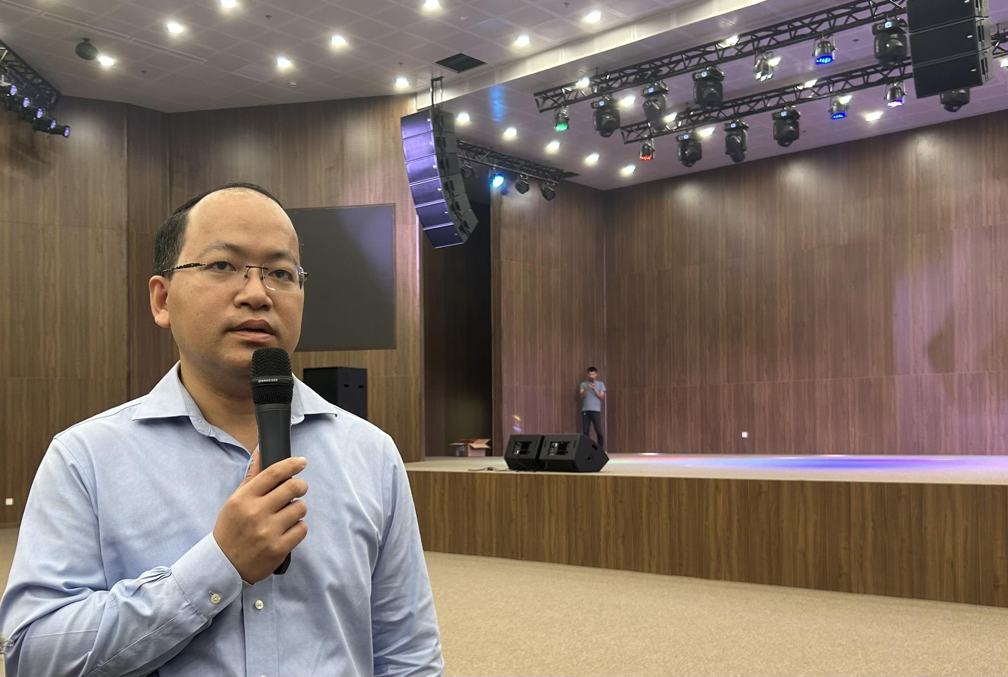 Ông Vũ Quốc Huy- Giám đốc NIC giới thiệu về NIC Hòa Lạc và sự kiện VIIE 2023 sắp diễn ra tại Trung tâm Đổi mới sáng tạo Quốc gia.