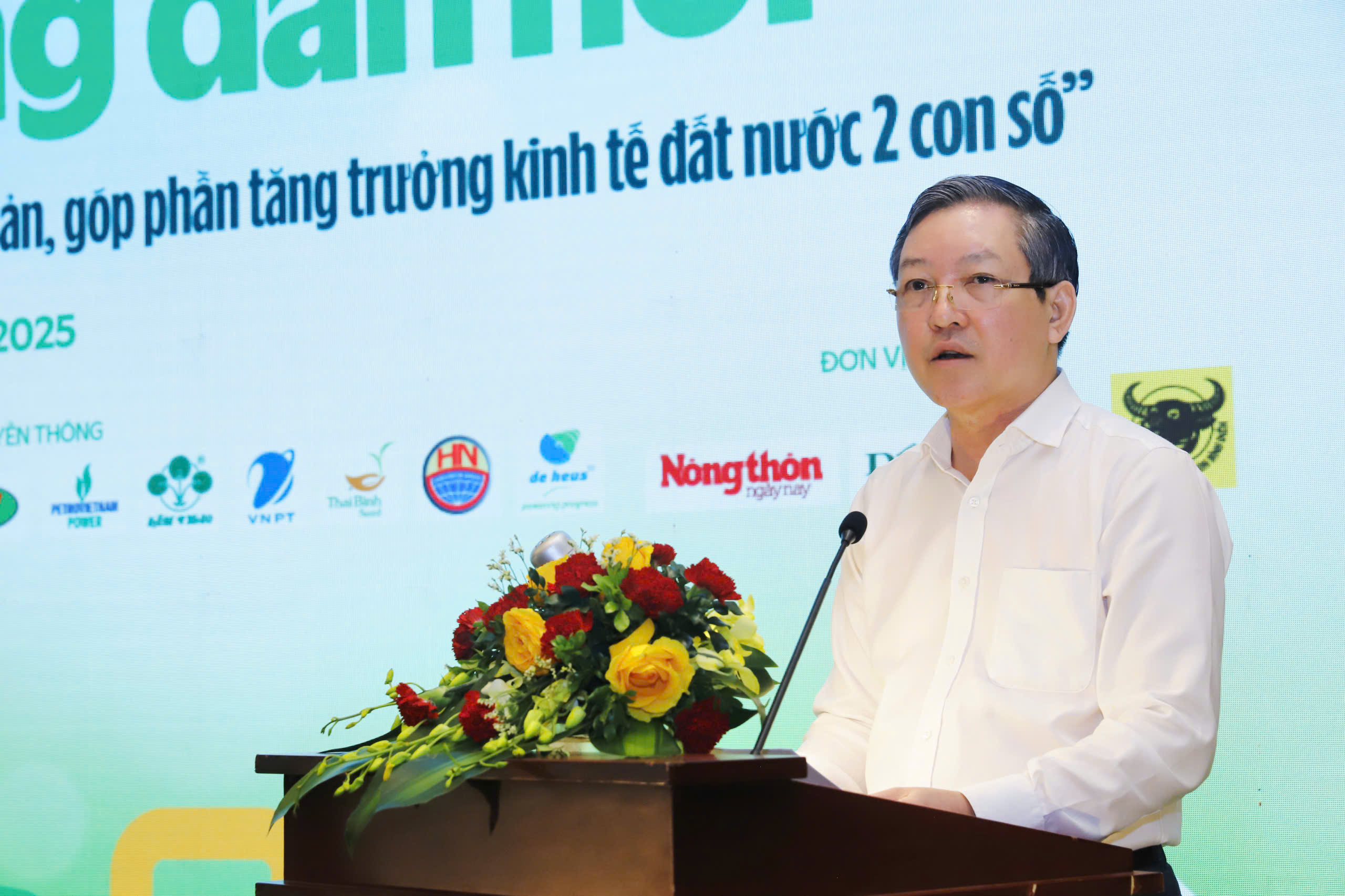 Chủ tịch Hội Nông dân Việt Nam Lương Quốc Đoàn và Bộ trưởng Công Thương Nguyễn Hồng Diên đồng chủ trì Diễn đàn Nông dân Quốc gia lần thứ X năm 2025.