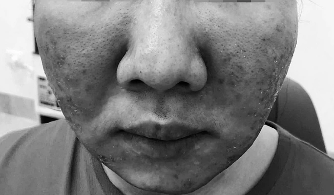 Khuôn mặt thâm sạm vì bôi kem chống nắng có chỉ số SPF 70 giá rẻ. Ảnh: VNExpress