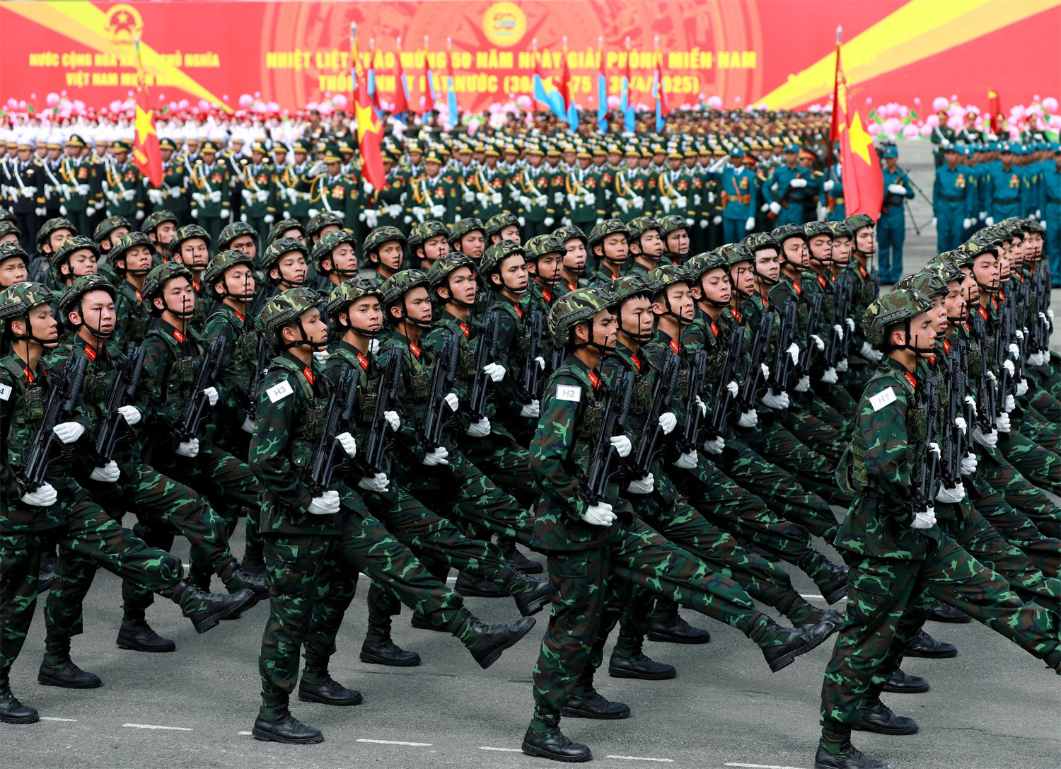 Khối chiến sĩ lục quân hợp luyện diễu binh, diễu hành chuẩn bị cho Lễ kỷ niệm 50 năm Ngày Giải phóng miền Nam, thống nhất đất nước (30-4-1975 - 30-4-2025)_ Nguồn: thanhnien.vn