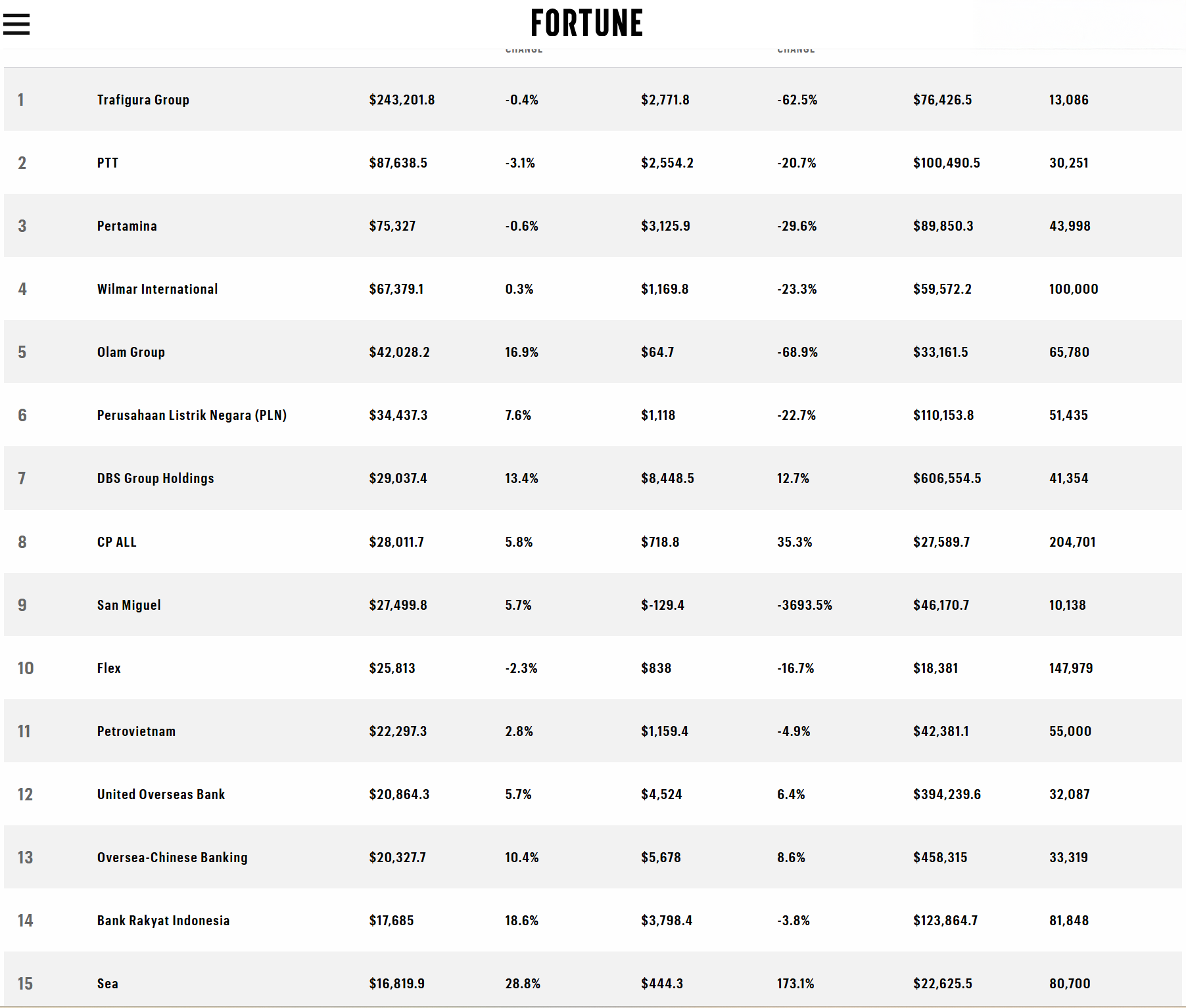 Top 15 doanh nghiệp lớn nhất khu vực Đông Nam Á