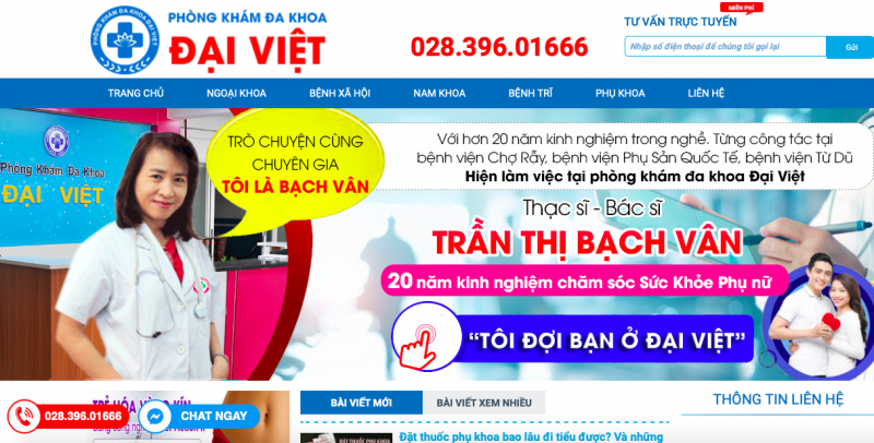 Website quảng cáo của Phòng khám đa khoa Đại Việt. Ảnh chụp màn hình