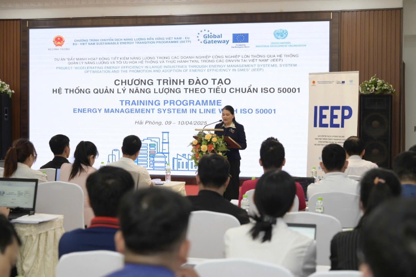 Ngày 09/04/2025, Bộ Công Thương phối hợp cùng Tổ chức Phát triển Công nghiệp Liên Hợp quốc (UNIDO) và với sự tài trợ của Liên minh Châu Âu (EU) đã tổ chức thành công khóa đào tạo “Xây dựng và vận hành hệ thống Quản lý năng lượng theo tiêu chuẩn ISO 50001” tại Hải Phòng. Khóa đào tạo kéo dài 2 ngày đã thu hút 65 học viên đến từ nhiều tỉnh như Hải Phòng, Hải Dương, Quảng Ninh, Hà Tĩnh, Nam Định, Hà Nam, Thái Bình,… nhằm trang bị cho cán bộ quản lý và kỹ thuật những kiến thức cần thiết để xây dựng, vận hành và cải tiến hệ thống quản lý năng lượng tại các doanh nghiệp.