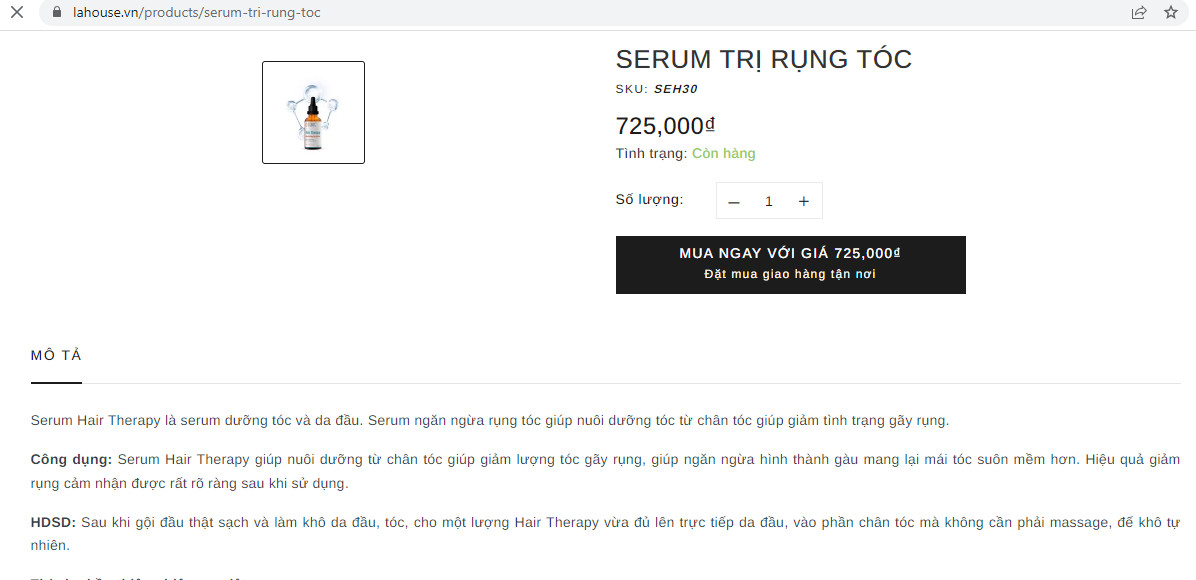 Cụ thể, trên website https://lahouse.vn/ (được giới thiệu thuộc sở hữu của Công ty TNHH NÀNG LÁ), quảng cáo COMBO TRỊ MỤN lại là hai sản phẩm gồm serum và nước hoa hồng, đây là thông tin quảng cáo sai sự thật, thổi phồng công dụng của sản phẩm. Một bác sĩ của Viện Da liễu khi được phóng viên hỏi về công dụng điều trị của các loại serum và nước hoa hồng mang thương hiệu LÁ HOUSE quảng cáo trên website thì vị này cho biết: “Serum và nước hoa hồng chỉ là mỹ phẩm giúp da sáng và đều màu chứ không thể can thiệp tình trạng mụn nên không được gắn công dụng trị mụn. Mụn là bệnh lý và cần phải thăm khám, có phác đồ điều trị theo từng loại mụn mới hiệu quả và chữa khỏi”.