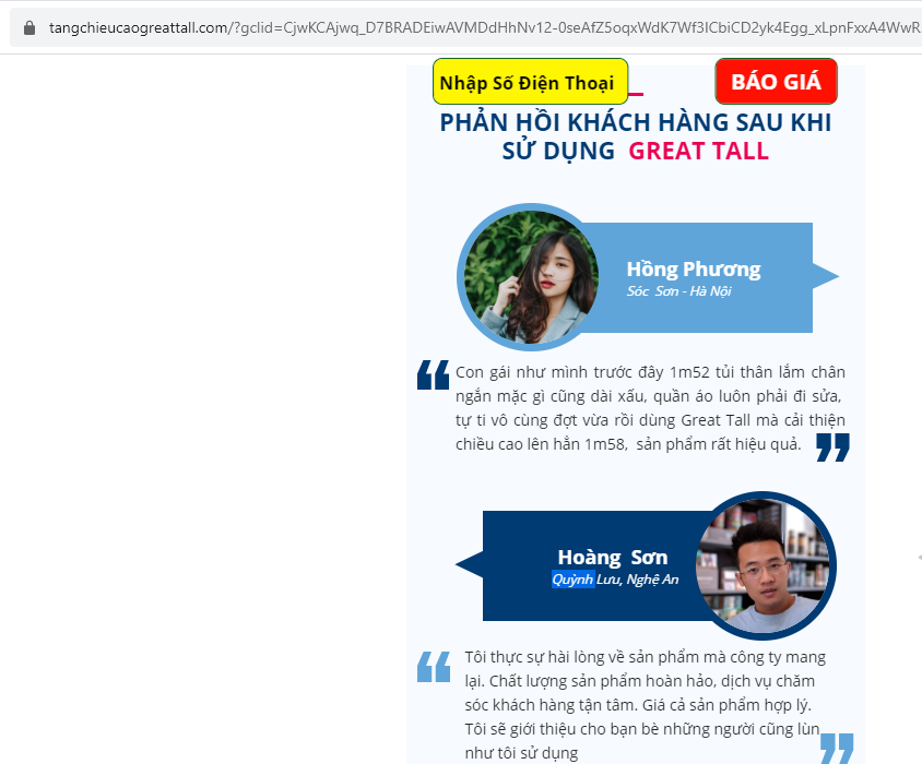 Một website quảng cáo Great Tall là sản phẩm "số 1 thị trường".
