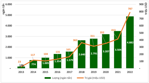 Theo thống kê từ Tổng cục Hải quan, lượng xuất khẩu viên nén tăng mạnh trong năm 2022 tăng gần 40% so với năm 2021. Giá trị xuất khẩu năm 2022 đạt trên 787 triệu USD, tăng hơn 90 % so với 2021.