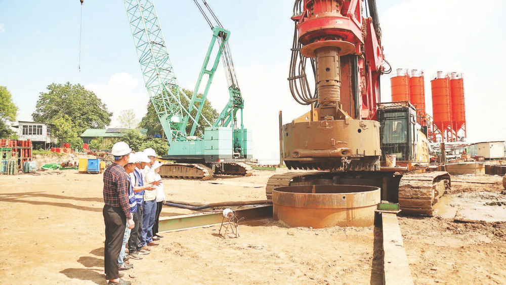 Công trường thi công dự án cầu Tứ Liên. (Ảnh: Báo Nhân dân)