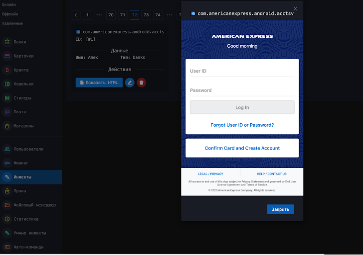 2. Bảng điều khiển giao diện: Cho phép tin tặc gửi lệnh, quản lý các lớp phủ giả mạo, khai thác dữ liệu đánh cắp.