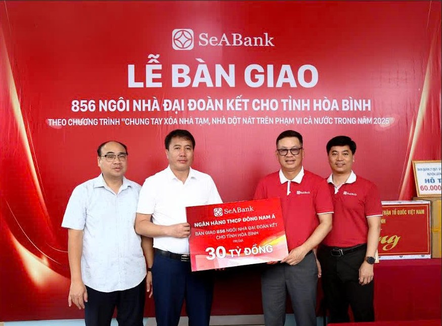 Hưởng ứng lời kêu gọi của Thủ tướng Chính phủ và Ủy ban Trung ương Mặt trận Tổ quốc Việt Nam "Chung tay xóa nhà tạm, nhà dột nát trên phạm vi cả nước trong năm 2025", với tinh thần tương thân tương ái và tôn chỉ hoạt động “Vì cộng đồng”, SeABank đã ủng hộ 30 tỷ đồng nhằm mang đến mái ấm vững chãi cho đồng bào khó khăn, chung tay thực hiện mục tiêu xóa nhà tạm, nhà dột nát tại tỉnh Hòa Bình, giúp người dân nơi đây có một ngôi nhà kiên cố, yên tâm lao động sản xuất.