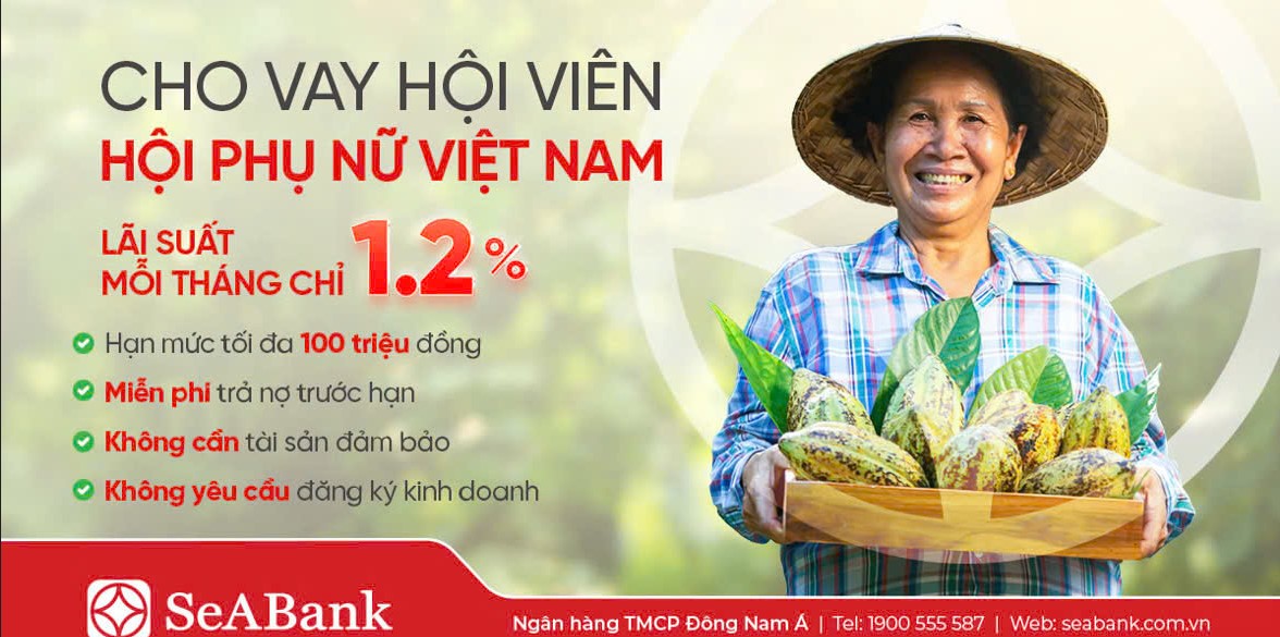 Nhằm đồng hành với phụ nữ - đối tượng khách hàng luôn được SeABank ưu tiên hỗ trợ trong những năm qua, SeABank triển khai chương trình “Ưu đãi cho vay dành cho Hội viên Hội Liên hiệp Phụ nữ Việt Nam” với lãi suất vay tín chấp hấp dẫn chỉ từ 1,2%/tháng tương đương 14,5%/năm, giảm tới 2,38% so với chính sách hiện hành. Đây là mức lãi suất ưu đãi cho vay không có tài sản đảm bảo rất cạnh tranh trên thị trường cũng như so với các tổ chức tài chính khác. Hạn mức tín dụng gói ưu đãi này lên tới 300 tỷ đồng.