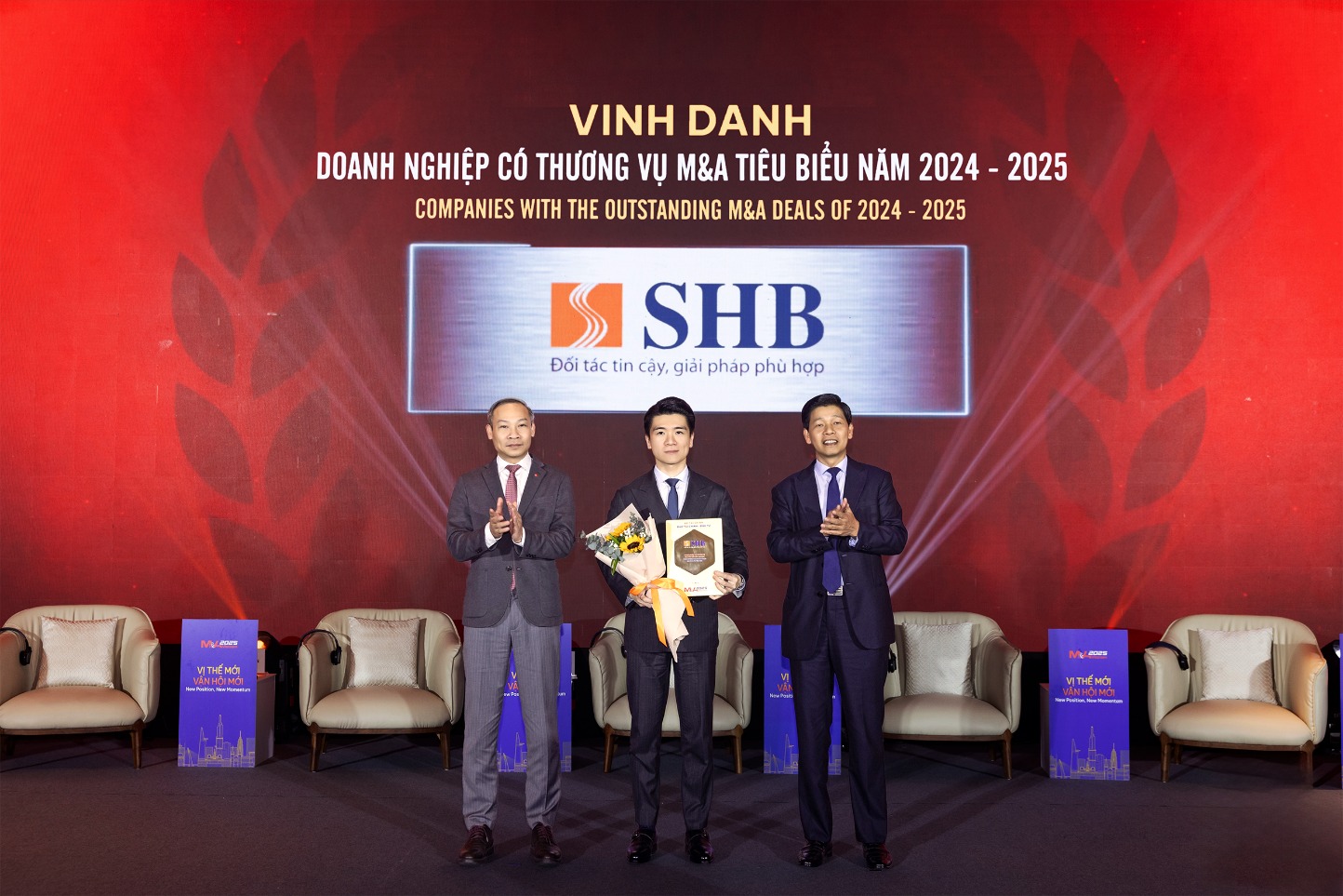 Tại Diễn đàn M&A Việt Nam 2025, sự kiện thường niên uy tín nhất trong lĩnh vực mua bán – sáp nhập doanh nghiệp do Báo Tài chính – Đầu tư tổ chức, Ngân hàng TMCP Sài Gòn – Hà Nội (SHB) được vinh danh là “Doanh nghiệp có thương vụ M&A tiêu biểu năm 2024-2025”.