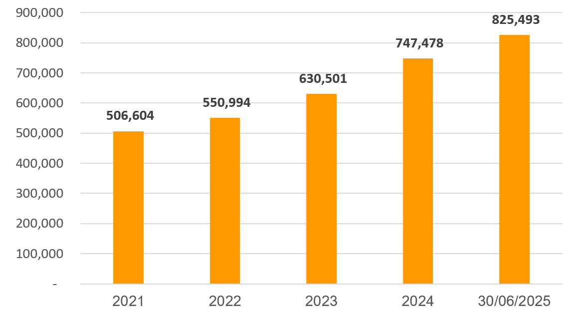 Tính đến 30/6/2025, tổng tài sản của SHB gần 826 nghìn tỷ đồng, trong đó, dư nợ cho vay khách hàng vượt 594,5 nghìn tỷ đồng, tăng 14,4% so với đầu năm. Lũy kế 6 tháng, SHB ghi nhận lợi nhuận trước thuế lũy kế 8.946 tỷ đồng, tăng 30% so với cùng kỳ năm 2024, tương đương 62% kế hoạch năm 2025.