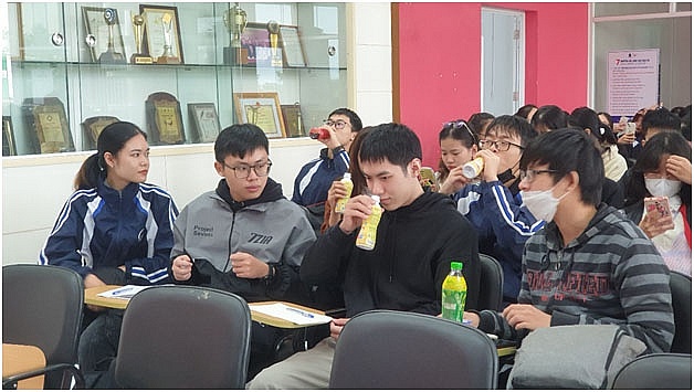 Tham quan thực tế, đoàn sinh viên và giảng viên không chỉ được nghe giới thiệu về mô hình sản xuất của nhà máy mà còn được tận mắt thăm quan thực tế dây chuyền sản xuất, nơi tạo nên những sản phẩm quen thuộc như Trà xanh không độ, Trà thanh nhiệt Dr Thanh, Nước tăng lực Number 1...