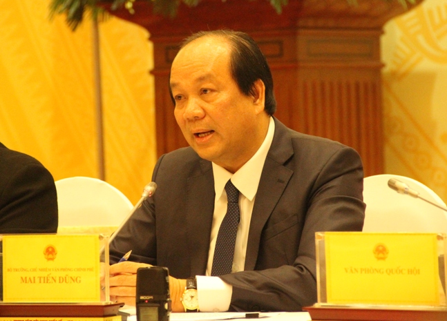 Bộ trưởng Mai Tiến Dũng tại buổi họp báo Chính phủ.
