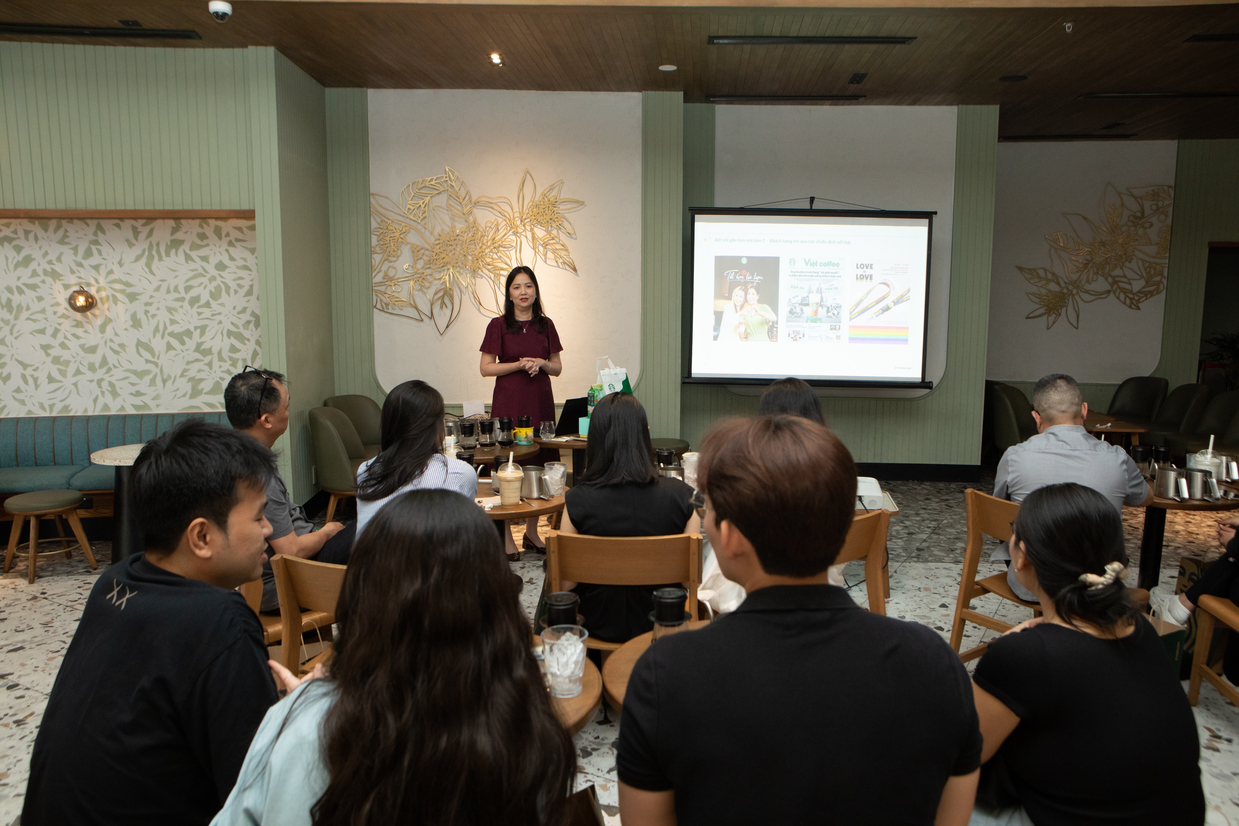 Bà Nguyễn Trần Anh Chi, Giám Ðốc Truyền Thông của Starbucks Vietnam chia sẻ tại buổi họp báo.
