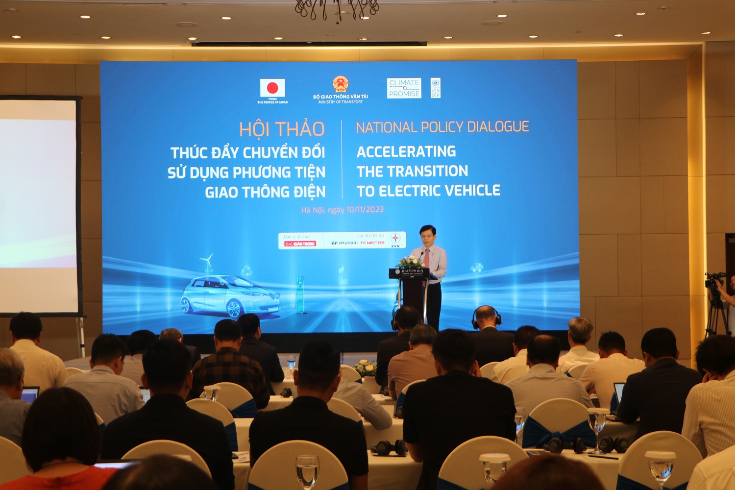 Cùng phát biểu tại Hội thảo, ông Patrick Haverman, Phó trưởng đại diện thường trú UNDP tại Việt Nam cho biết, cam kết chính trị mạnh mẽ từ chính phủ và sự tham gia năng động từ khu vực tư nhân là yếu tố quan trọng thúc đẩy chuyển đổi sử dụng và phát triển phương tiện giao thông điện. Chính phủ đã có nhiều nỗ lực to lớn đẩy nhanh phát triển và hoàn thiện khung chính sách quốc gia như Quyết định số 876/QD-TTg ngày 22 tháng 7 năm 2022, phê duyệt Chương trình hành động về chuyển đổi năng lượng xanh, giảm phát thải khí các-bon, khí mê-tan trong giao thông vận tải.