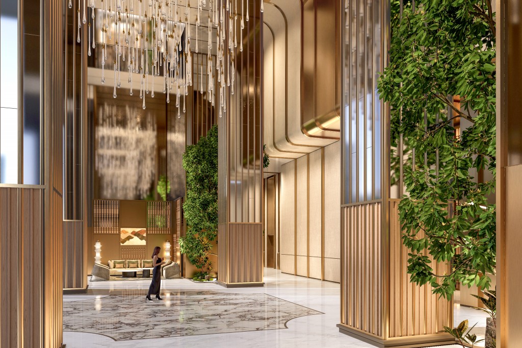 “Riêng sảnh các tòa căn hộ cao đến 14m, tương đương chiều cao 4 tầng căn hộ, tạo cảm giác sang trọng. Thiết kế sảnh lấy cảm hứng từ các làng nghề di sản cạnh sông Hồng. Nhìn từ xa, các đường nét chạy từ trần xuống sàn tựa như mặt nước phản chiếu nhịp sống đô thị. Tất cả tạo nên tổng thể tiếp nối từ dòng sông di sản đến dòng chảy nhộn nhịp của một Hà Nội đang vươn mình phát triển”, đại diện Sun Property hé lộ.