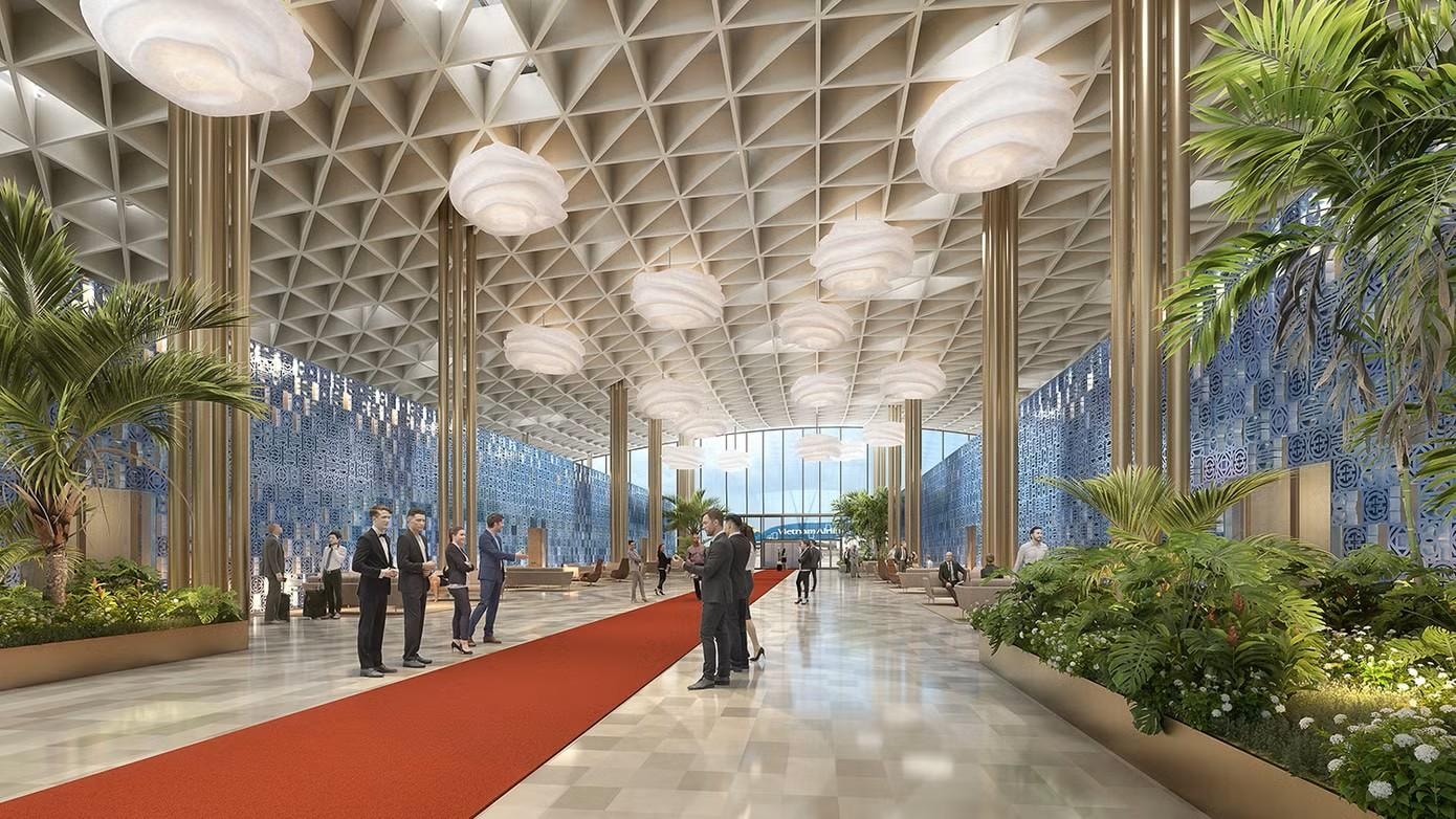Thiết kế bên trong trung tâm Hội nghị APEC Phú Quốc. Sun Group hợp tác với những tên tuổi lớn trên thế giới để nâng tầm chất lượng cho các công trình trọng điểm phục vụ APEC 2027.