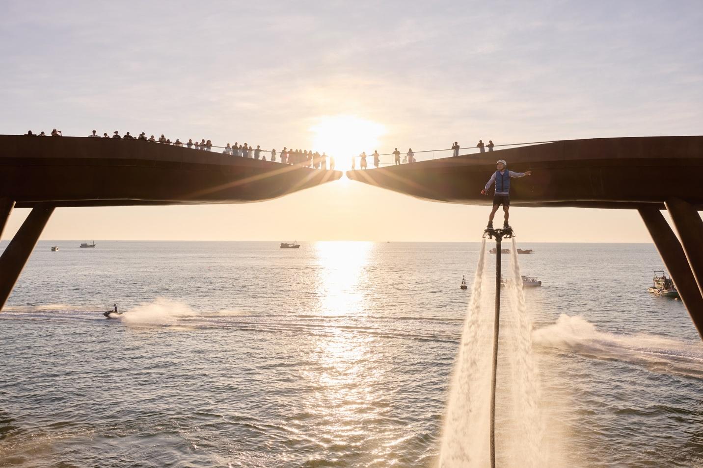 Các vị khách ngắm hoàng hôn, thưởng thức nghệ thuật tại Cầu Hôn – công trình biểu tượng Sun Group kiến tạo tại Phú Quốc. Ảnh: Ánh Dương