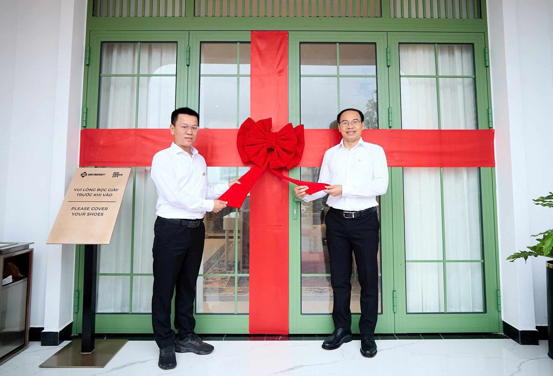 Đại diện Sun Group làm nghi thức khai trương nhà mẫu
