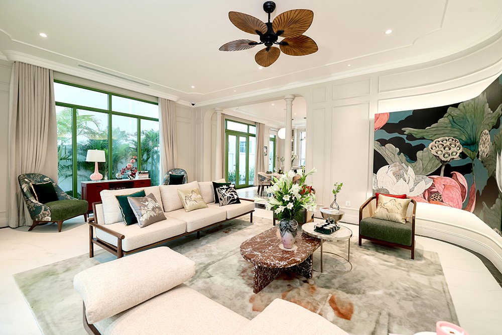 Không gian nội thất nhà mẫu biệt thự đơn lập được chăm chút tỉ mỉ Đây là những mảnh ghép đầu tiên trong bộ sưu tập 469 mẫu nhà Kim Ngân – Kim Tiền với thiết kế độc bản, không lặp lại trên một trục dọc, kết hợp hài hòa giữa nét đẹp truyền thống và tinh thần hiện đại, tạo nên không gian sống vừa thân thuộc vừa sang trọng. Ngay sau lễ khai trương, chủ đầu tư đã mở cửa nhà mẫu, tạo điều kiện cho khách hàng, nhà đầu tư trực tiếp tham quan, trải nghiệm.