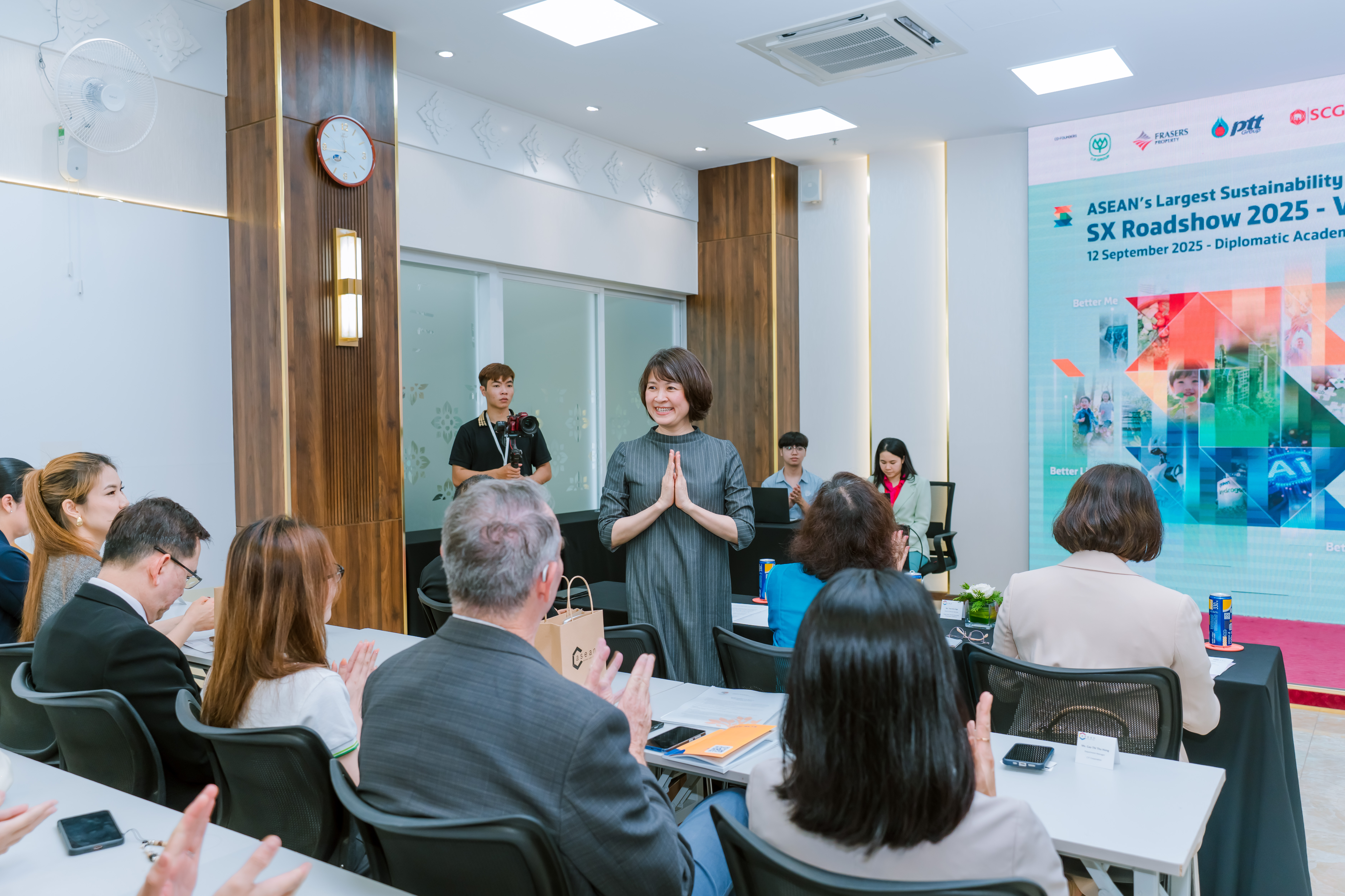 Trong phát biểu khai mạc, Đại sứ Urawadee Sriphiromya nhấn mạnh phát triển bền vững đang là thách thức cũng như cơ hội lớn đối với khu vực ASEAN. Những hoạt động như SX Roadshow 2025 hay SX 2025 sẽ trở thành nền tảng quan trọng để tăng cường đối thoại, thúc đẩy hợp tác công – tư và chia sẻ kinh nghiệm về các mô hình, sáng kiến ESG.