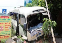 Tại hiện trường vụ tai nạn giao thông chiếc xe khách bị móp méo, may mắn không có thương vong về người.
