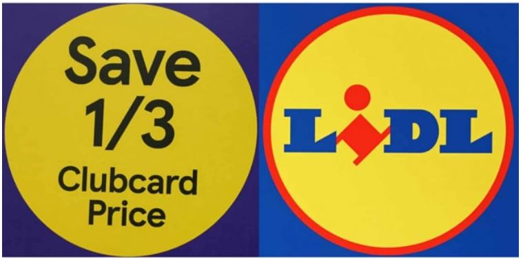 Thiết kế Clubcard Price của Tesco và logo của Lidl.