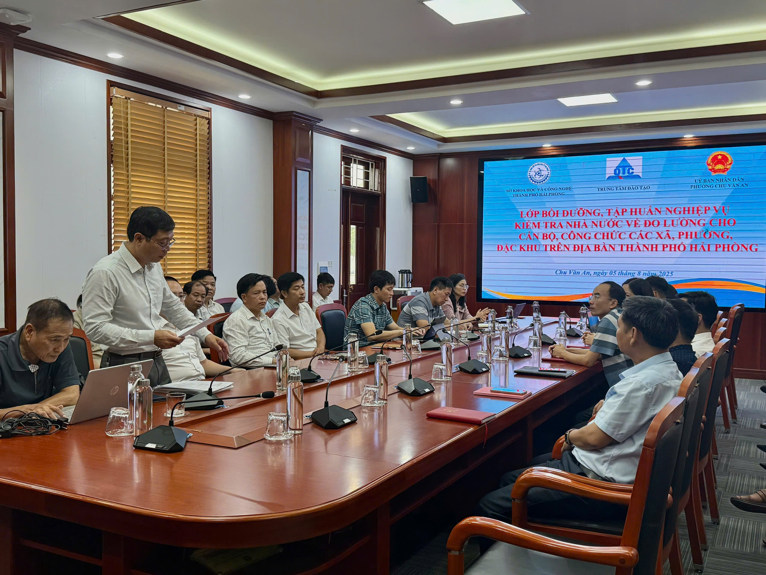 Đây là khóa đào tạo đầu tiên được tổ chức trong chuỗi 10 khóa đào tạo (09 khóa đào tạo về nghiệp vụ kiểm tra nhà nước về đo lường cho cán bộ cấp xã/ phường và 01 khóa tập huấn chuyên sâu về nghiệp vụ thẩm định hồ sơ trong lĩnh vực TCĐLCL) được phê duyệt tại Kế hoạch số 104/KH-SKHCN ngày 24/7/2025 về việc tổ chức các khóa bồi dưỡng, tập huấn chuyên môn, nghiệp vụ cho cán bộ, công chức của chính quyền địa phương 2 cấp của Sở Khoa học và Công nghệ Hải Phòng nhằm nâng cao năng lực cho đội ngũ cán bộ, công chức thực hiện quy định tại Nghị định số 132/NĐ-CP ngày 12/6/2025 và Nghị định số 133/NĐ-CP ngày 12/6/2025 của Chính phủ về phân cấp và phân định thẩm quyền trong lĩnh vực quản lý nhà nước của Bộ Khoa học và Công nghệ.