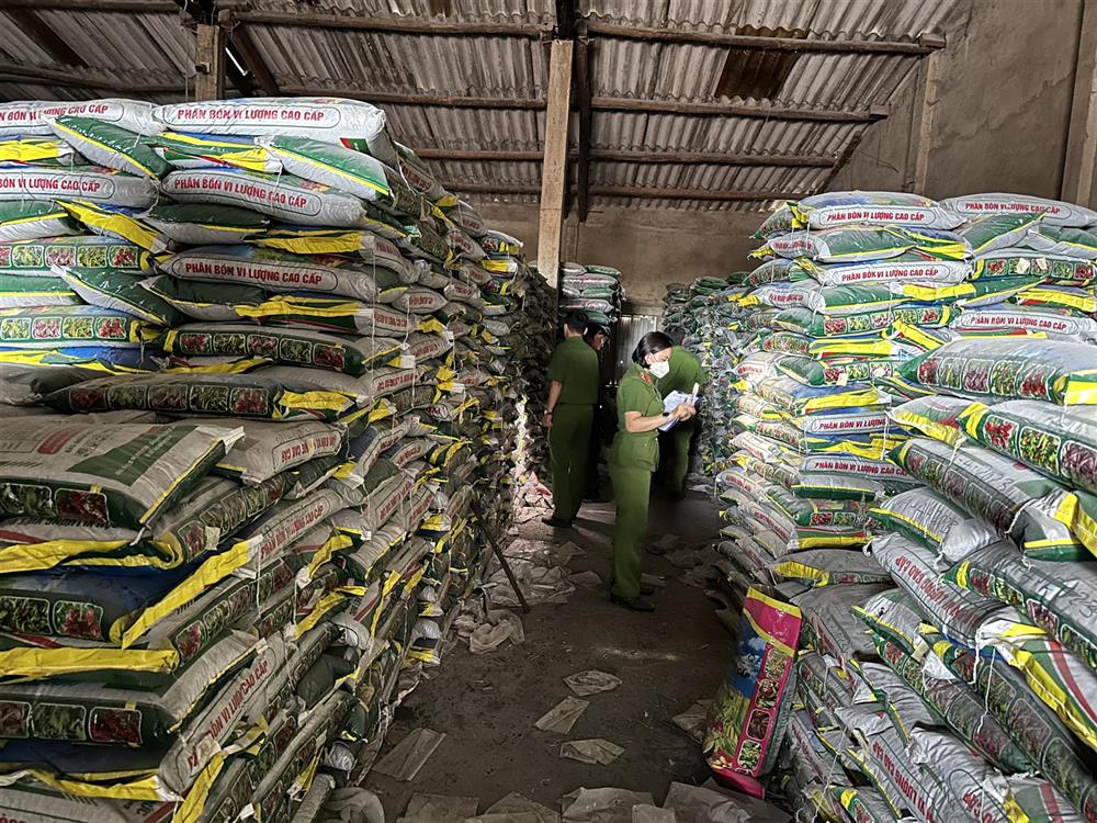 Kiểm tra kho phân bón giả của Công TNHH MTV Việt Đức. Ảnh: BCA.