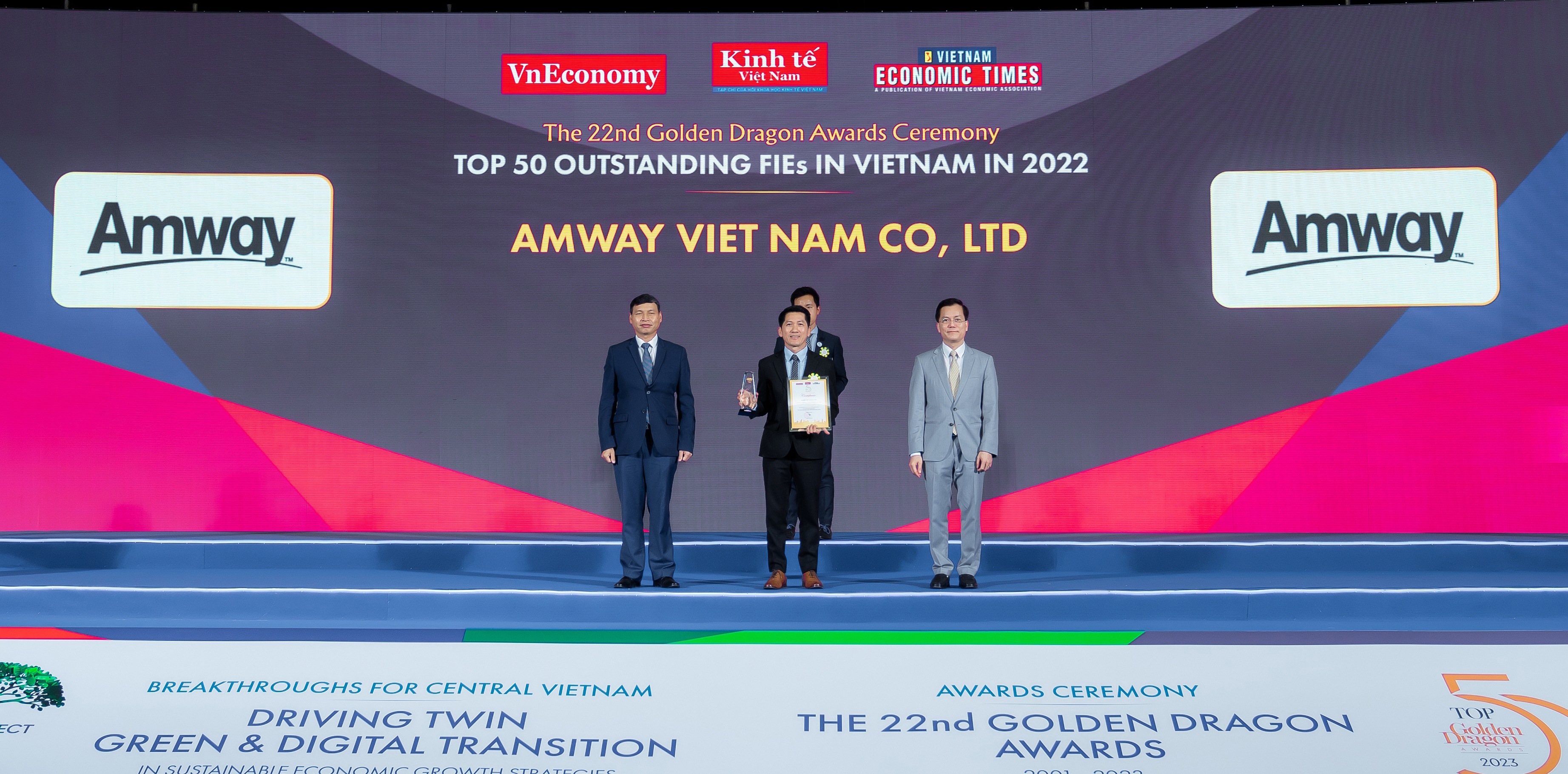 Sau những nỗ lực không ngừng, mới đây, Amway Việt Nam tiếp tục vinh dự khi nhận giải thưởng doanh nghiệp có có vốn đầu tư nước ngoài (FDI) tiên phong trong lĩnh vực chuyển đổi số tại Việt Nam tại lễ trao giải Rồng Vàng 2023, vinh dự nhận bằng khen từ Ban chấp hành Trung ương Đoàn Thanh niên Cộng sản Hồ Chí Minh vì những đóng góp tích cực và hiệu quả trong chương trình hiến máu Chủ nhật Đỏ... Góp phần không nhỏ cho việc khẳng định vị trí tiên phong của Amway trong lĩnh vực bán hàng trực tiếp toàn cầu.