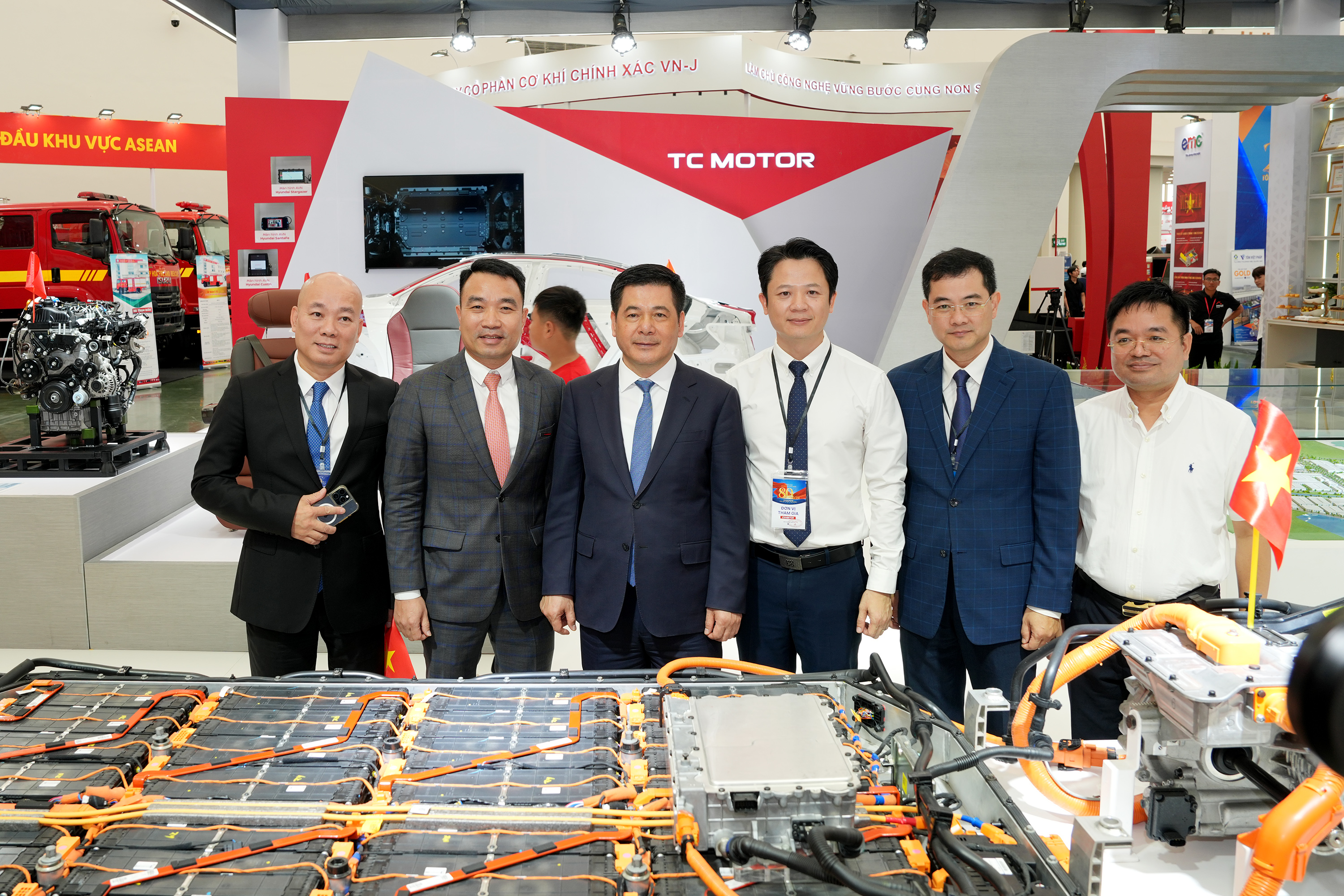 Bộ trưởng Bộ Công thương Nguyễn Hồng Diên (thứ 3 từ trái sang) và Phó Chủ tịch TC Group Lê Ngọc Đức (thứ 2 từ trái sang) tại không gian triển lãm của Tập đoàn Thành Công.