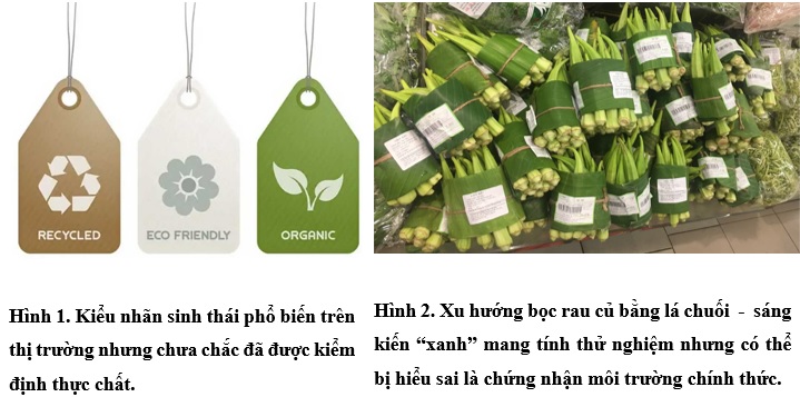 Tại các siêu thị, chợ trực tuyến và nền tảng thương mại điện tử, không khó để bắt gặp các sản phẩm được dán nhãn “Eco-friendly”, “Tự nhiên 100%”, “Xanh”, “Vì môi trường”, “Zero waste”... mà không đi kèm bất kỳ chứng nhận hay thông tin minh bạch nào về quy trình sản xuất, tiêu chuẩn kỹ thuật, hay chuỗi cung ứng. Trong một khảo sát nội bộ do tổ chức bảo vệ người tiêu dùng thực hiện vào năm 2023, hơn 60% sản phẩm có nhãn “sinh thái” tại các kệ hàng không cung cấp được chứng cứ khoa học hoặc xác nhận độc lập về tính bền vững (hình 1 và 2) [5, 6].