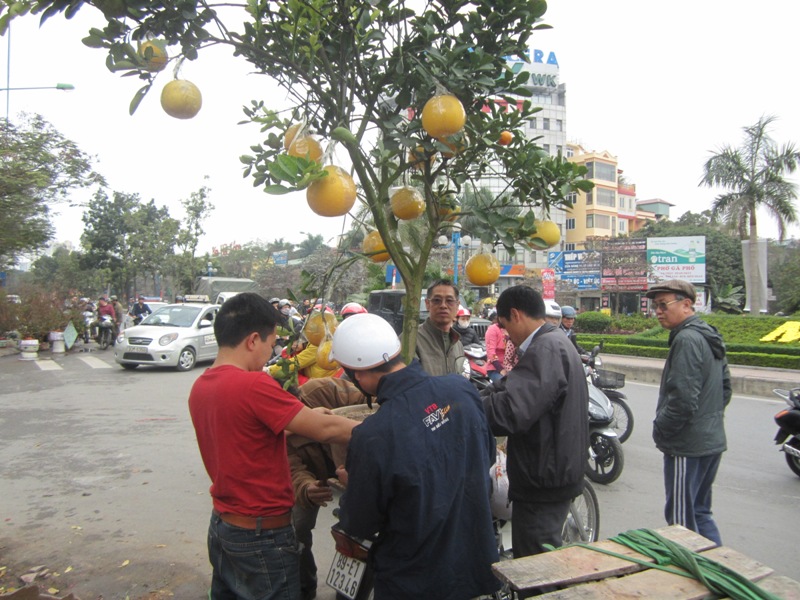 Theo đó, khoảng độ từ đầu tháng 12 Âm lịch tại các hội chợ hàng Tết, dọc tuyến đường Đại lộ Thăng Long (Hà Nội) hay các khu bán hàng hoa cảnh, những chậu bưởi bắt đầu xuống phố và thu hút người dùng. Những chậu bưởi có giá khoảng vài triệu cho tới vài chục triệu đồng.