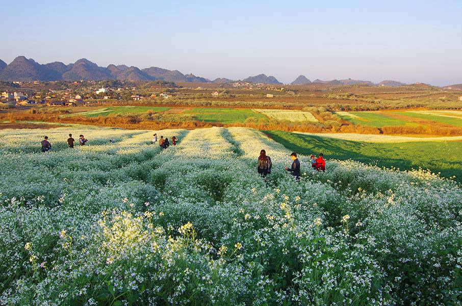 Thảo nguyên hoa có lẽ là nơi rất nhiều người muốn đặt chân tới nhất. Những cánh đồng hoa cải, dã quỷ, trạng nguyên, hoa đào, hoa mận đẹp mê mẩn. Loài hoa tam giác mạch thường nở rộ vào tháng 10, 11 dương lịch hàng năm. Cây Tam giác mạch cao chừng 1m thì nở, hoa có màu đỏ và trắng, rất quyến rũ.