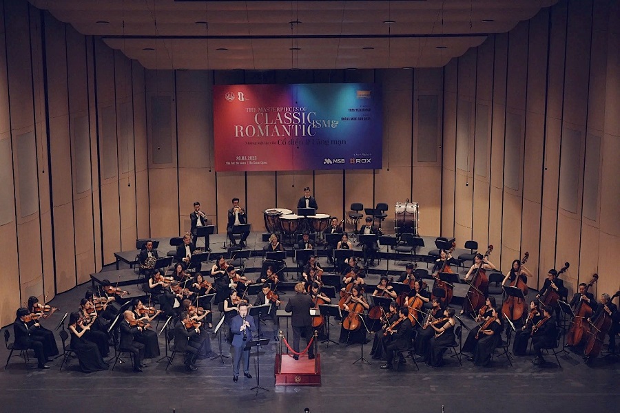 (VietQ.vn) - Vào tối ngày 20/3/2025, Nhà hát Hồ Gươm trở thành điểm hẹn của những tâm hồn yêu nghệ thuật khi Dàn nhạc Giao hưởng Hà Nội mang đến đêm nhạc "Những kiệt tác của Chủ nghĩa Cổ điển & Lãng mạn". ROX Group và MSB là hai đơn vị đồng hành góp sức đưa tinh hoa âm nhạc đến với khán giả Việt.