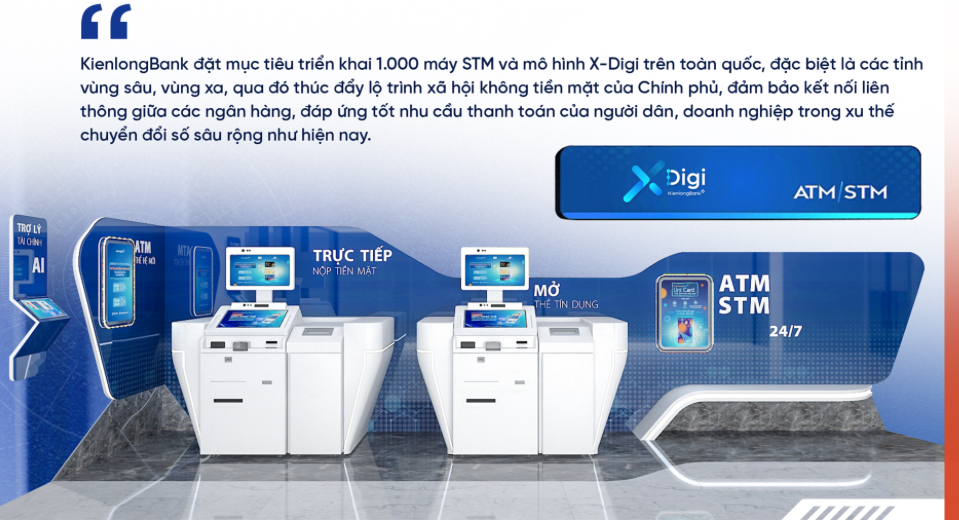 Mở rộng hơn nữa trong hoạt động thanh toán cũng như đưa các dịch vụ tài chính đến với đại bộ phận người dân, trong năm 2024 KienlongBank đã cho ra mắt mô hình Ngân hàng Số X-Digi với hệ thống các X-Digi Booth. Với trách nhiệm dành cho xã hội, cộng đồng cũng như nhìn nhận quá trình số hóa nông thôn như là một chiến lược phát triển bền vững, KienlongBank đặt mục tiêu sử dụng công nghệ để đơn giản hóa thủ tục, giúp người dân dễ dàng tiếp cận từ những dịch vụ tài chính cơ bản nhất.