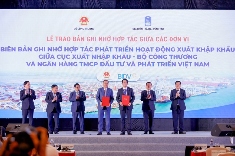 Thủ tướng Phạm Minh Chính chứng kiến trao Bản ghi nhớ hợp tác giữa Cục Xuất nhập khẩu (Bộ Công Thương) và Ngân hàng TMCP Đầu tư và Phát triển Việt Nam (BIDV).Thay mặt Chính phủ, Thủ tướng ghi nhận, đánh giá cao nỗ lực của Bộ Công Thương, các bộ, ngành, địa phương, cộng đồng doanh nghiệp logistics Việt Nam, đạt những kết quả quan trọng, tạo diện mạo mới cho ngành logistics, đóng góp quan trọng vào thành tựu chung của cả nước.