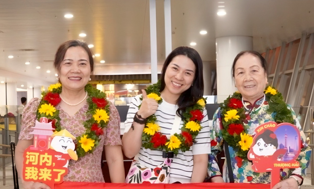 Những hành khách đầu tiên trên chuyến bay khai trương kết nối Hà Nội - Thượng Hải