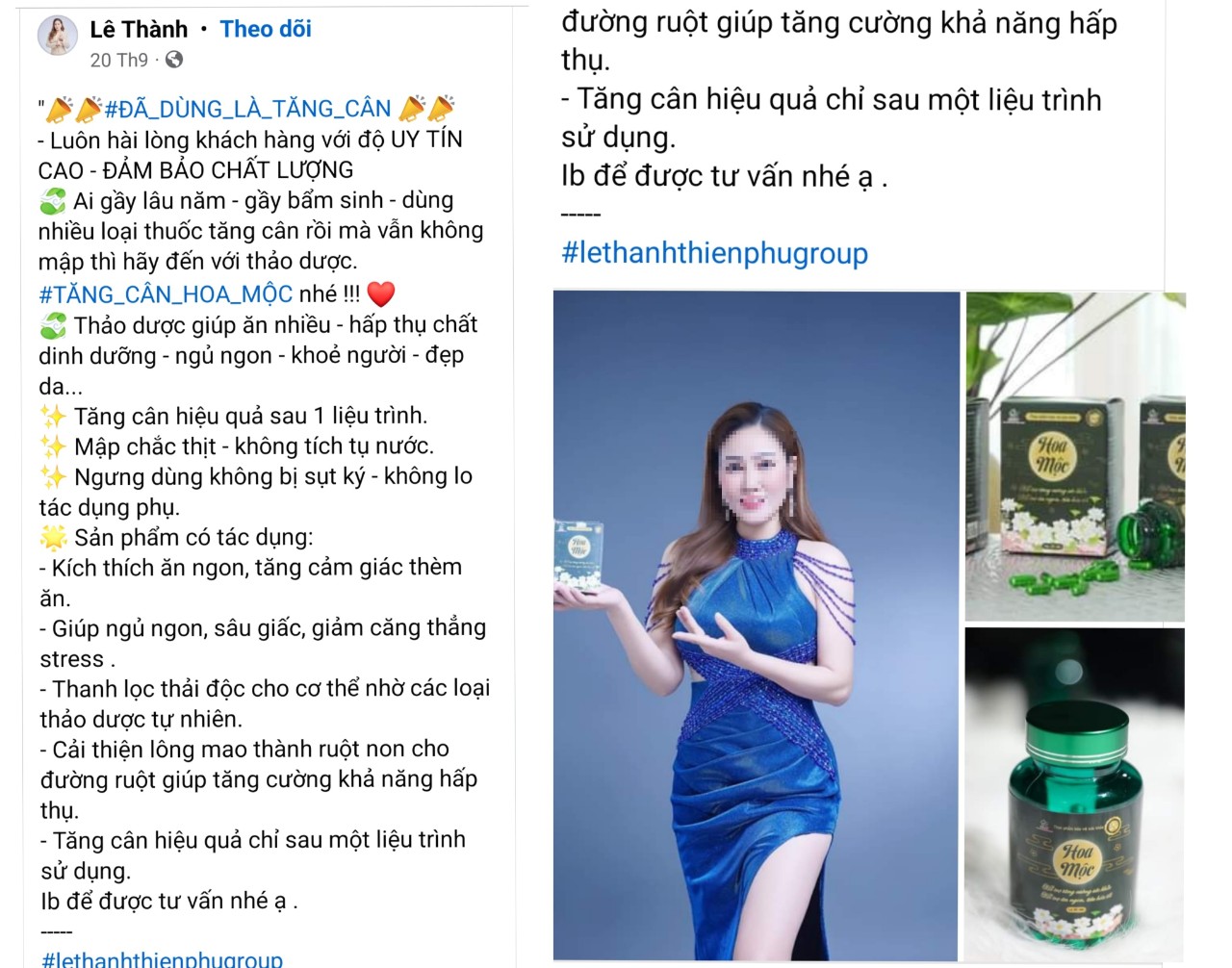 Tiếp theo là sản phẩm Hoa Mộc được nickname “Lê Thành”- giới thiệu là Phó giám đốc Công ty Thiên Phú Group quảng cáo sai công dụng. Theo bài bán hàng của bà Thành, những ai gầy lâu năm, gầy bẩm sinh, dùng nhiều loại thuốc tăng cân nhưng không hiệu quả dùng ngay tăng cân Hoa Mộc: “Tăng cân hiệu quả sau 1 liệu trình, mập chắc, không tích nước, ngưng dùng không giảm kg, không tác dụng phụ...”.