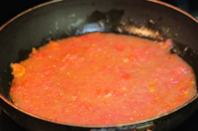 Thịt sau khi hấp chín, để qua một bên.- Tiếp theo đun nóng một ít dầu ăn, phi hành, tỏi thơm, cho cà chua xay vào đun sôi, đun khoảng 5 phút.