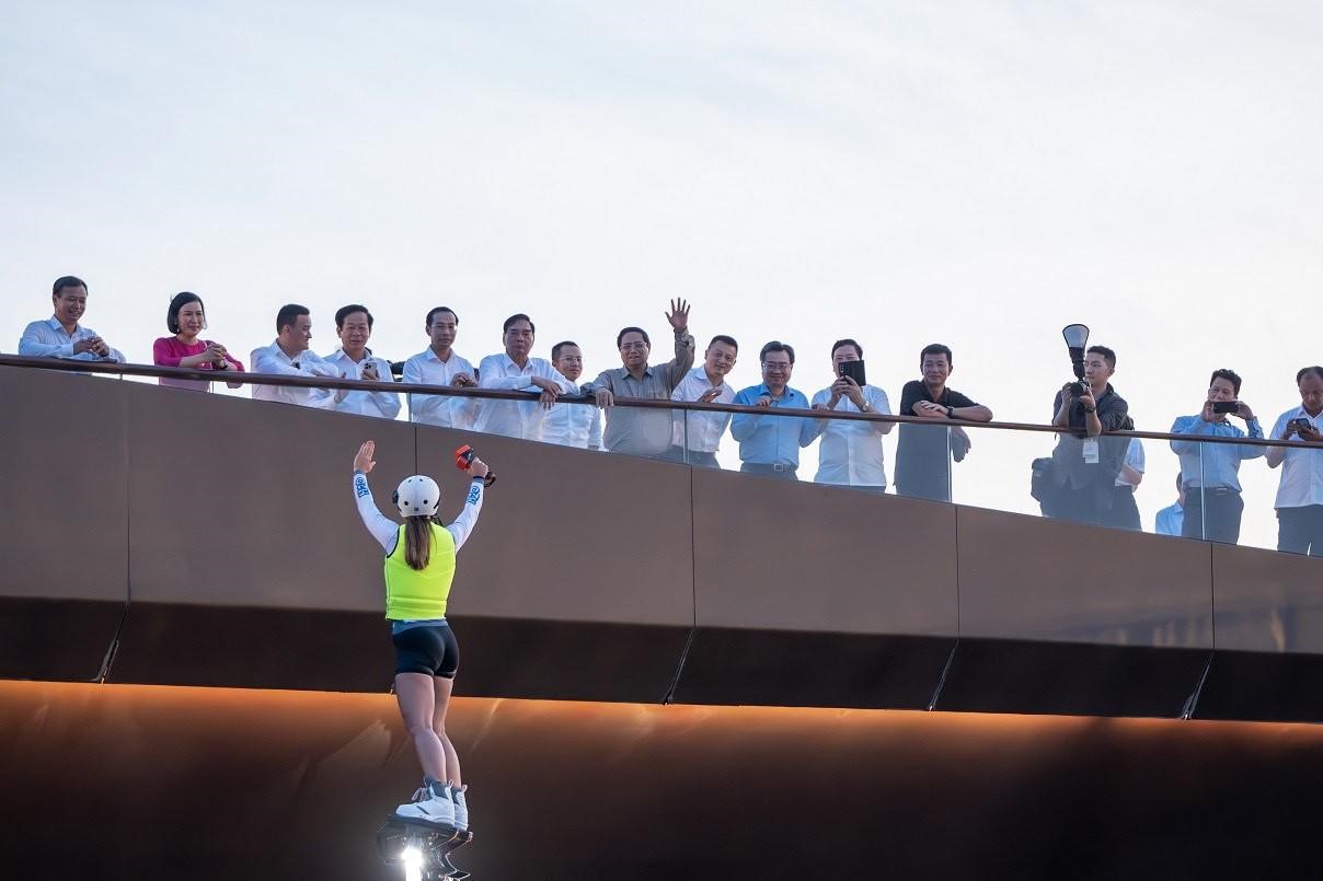 Thủ tướng khảo sát show biểu diễn nghệ thuật thể thao mạo hiểm “Vòng xoáy tình yêu” tại Thị trấn Hoàng Hôn, Phú Quốc. Ảnh: Anh Tuấn