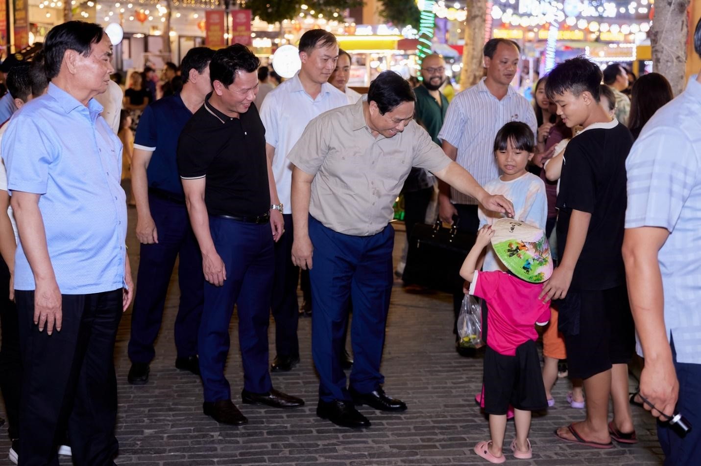 Tối 30/3, Thủ tướng trực tiếp thăm hỏi các hộ kinh doanh và du khách tại chợ đêm Vui Phết (Thị trấn Hoàng Hôn, An Thới, Phú Quốc). Ảnh: Minh Khánh