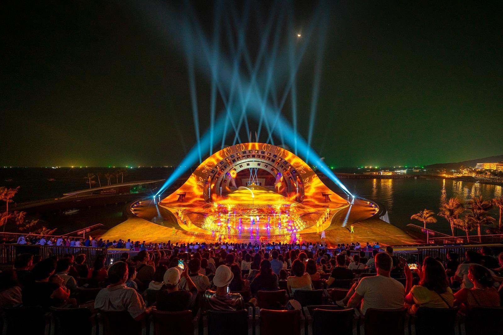 Các show nghệ thuật ở Thị trấn Hoàng Hôn như “Vòng xoáy Tình yêu” hay “Nụ hôn của biển cả” và màn trình diễn pháo hoa nghệ thuật hàng đêm đang là minh chứng việc các doanh nghiệp, địa phương đầu tư cho công nghiệp văn hóa để phát triển du lịch bền vững theo định hướng của Chính Phủ. Ảnh: Minh Khánh