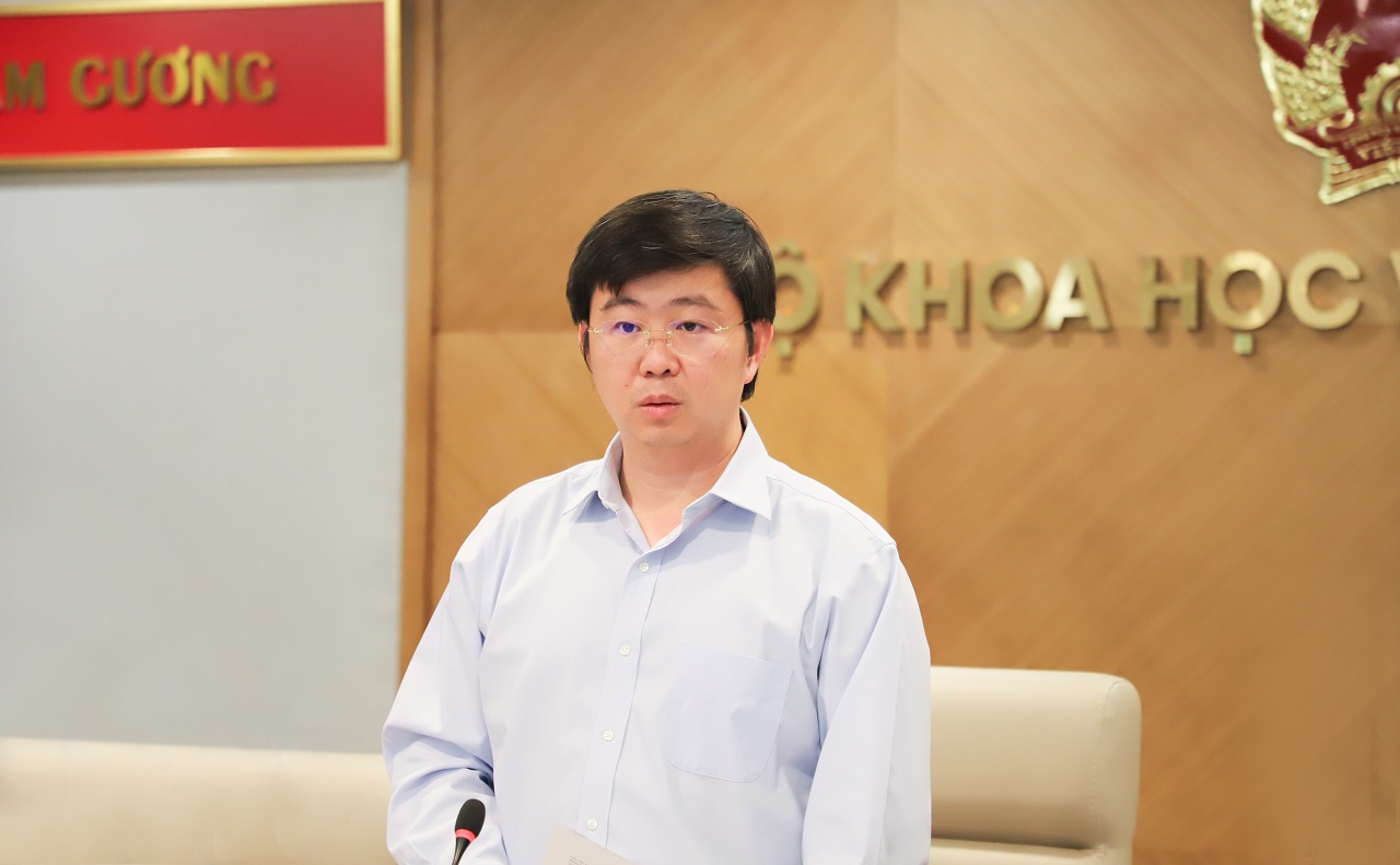Thứ trưởng Bộ Khoa học và Công nghệ Bùi Hoàng Phương chủ trì buổi họp báo. (Ảnh: Ngọc Xen)