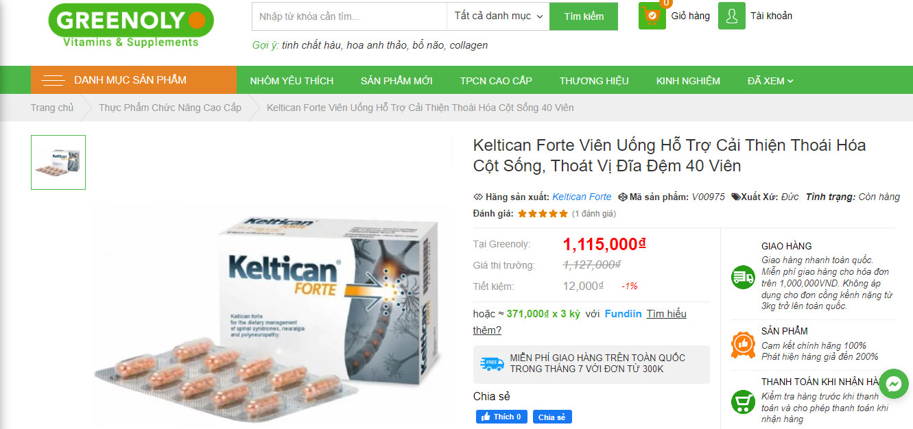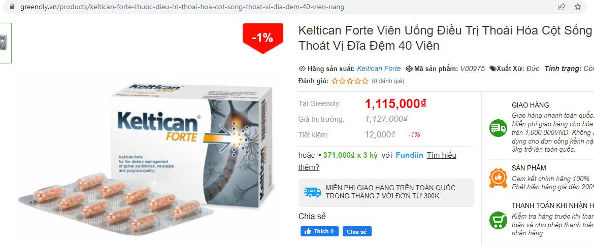 Như Chất lượng Việt Nam (VietQ.vn) đã phản ánh, tại website có địa chỉ https://greenoly.vn/ thương hiệu này quảng cáo nhiều sản phẩm TPCN như thuốc trị bệnh. Đơn cử như sản phẩm tên gọi Keltican Forte quảng cáo có xuất xứ từ Đức được thương hiệu này thổi phồng công năng là viên uống điều trị thoái hóa cột sống thoát vị đĩa đệm.