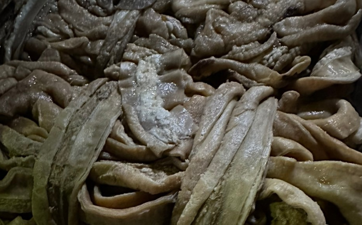 Lượng lớn lòng bò đông lạnh đã ngả màu vàng. (Ảnh: Cục QLTT Cao Bằng)