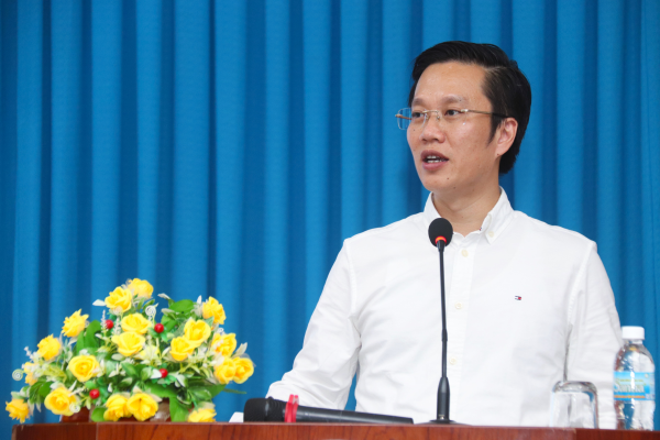 TS. Hà Minh Hiệp phát biểu tại chương trình.Tham dự tọa đàm có TS. Hà Minh Hiệp - Quyền Tổng cục trưởng Tổng cục Tiêu chuẩn Đo lường Chất lượng - Bộ Khoa học và Công nghệ; Ths Phạm Lê Cường - Phó Chánh Văn phòng Tổng cục; đại diện lãnh đạo Trường Đại học Nha Trang; đại diện các đơn vị liên quan, giảng viên Khoa Công nghệ Thực phẩm và Viện Nuôi trồng Thủy sản; sinh viên đang theo học chương trình Minh Phú – NTU.