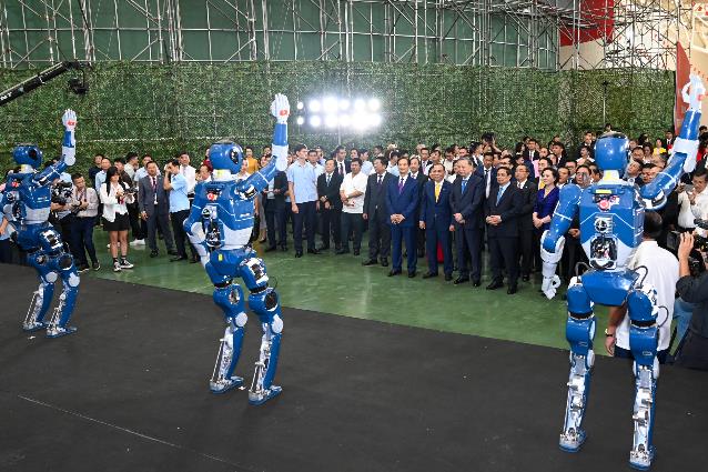 Tại gian hàng của Vingroup, du khách sẽ có cơ hội chiêm ngưỡng dàn robot hình người “100% make-in-Vietnam” trình diễn. Các robot của VinMotion không chỉ vận động linh hoạt, thực hiện các động tác phức tạp mà còn có khả năng tương tác tự nhiên với khách tham quan, trò chuyện, trả lời câu hỏi và chụp ảnh check-in. Sản phẩm công này được xem là một trong những biểu tượng của khát vọng đưa công nghệ Việt vươn tầm thế giới trong kỷ nguyên mới.